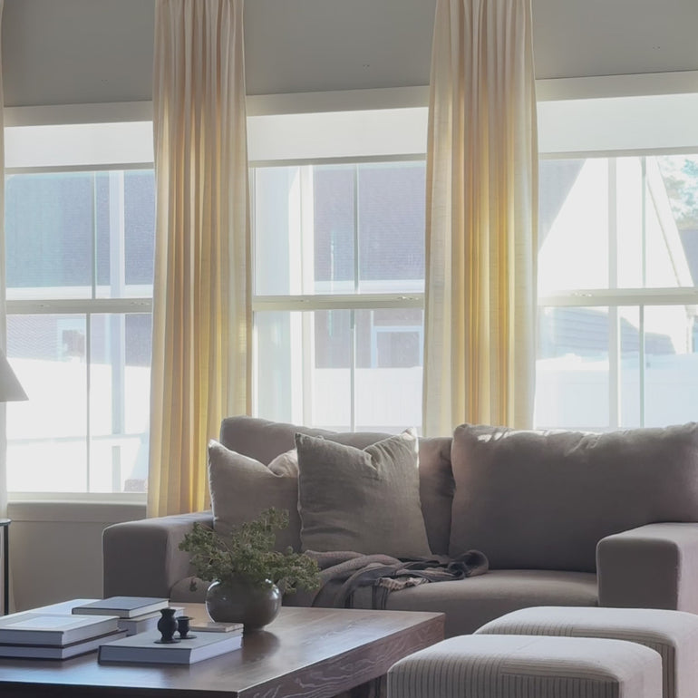 Glad you asked! Double layers of window shades and curtains just double the styling fun. Our custom window shades are not only excellent standalone covers but also perfect extra layers. Layering window shades and curtains can make a statement in any space. For a crisp, layered look, pair airy sheer curtains or linen curtains with cordless window shades in a cohesive colorway. For added functionality, combine blackout roller shades or solar shades with blackout curtains to enhance texture and light control. This combination offers both style and function, giving your room a polished and sophisticated feel.