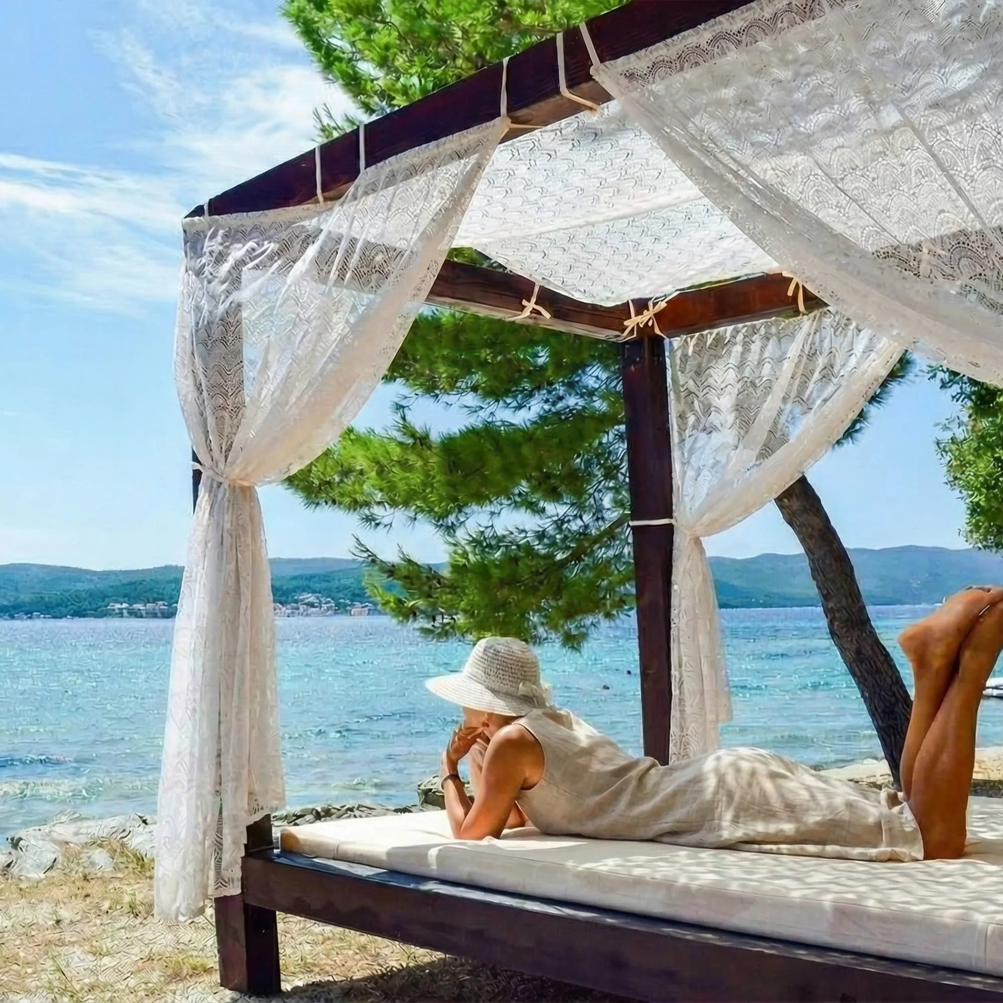 It evokes the soothing sound of waves lapping at the shore every time you glance at your kitchen or dining area. Imagine sipping your morning latte while soft light filters through the lace, casting wave-like patterns on your table, or unwinding with a book after work as the curtains soften the fading daylight. These curtains don’t just dress your windows—they transform ordinary spaces into serene retreats where you can breathe deeply and leave the day’s stress behind.