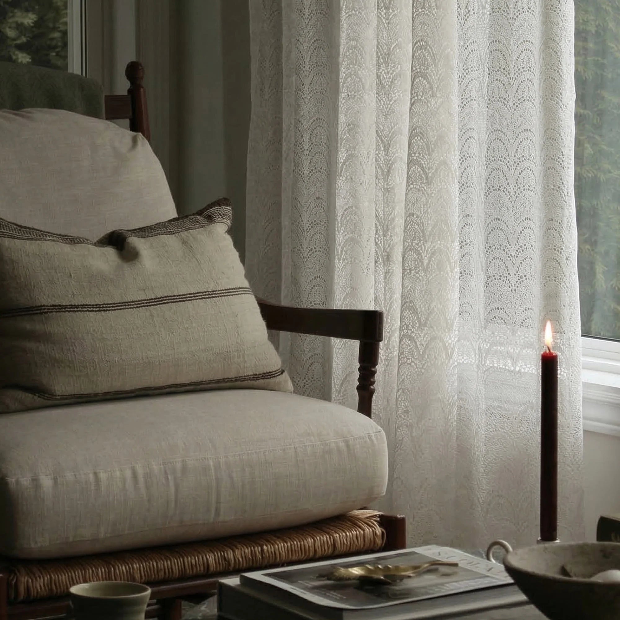 As light passes through the lace, the ripples cast soft, shifting highlights that make the design feel alive, adding depth and personality to your space. It’s a subtle statement piece for anyone who loves a touch of organic, nature-inspired design in their home. Let Juliette help you craft that quiet corner of the world that is entirely your own.